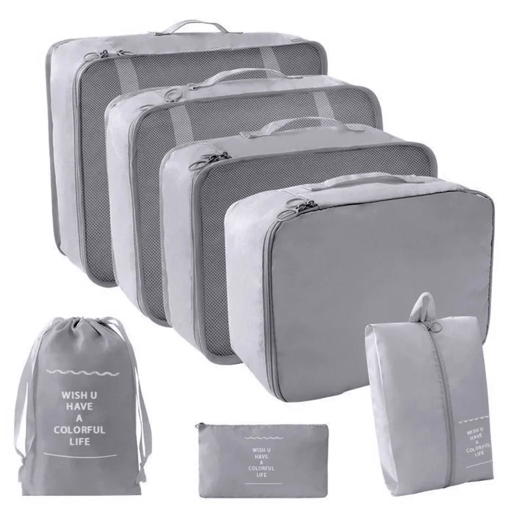 Set Includes: 7 pcs (various sizes of packing cubes + shoe bag + laundry pouch)