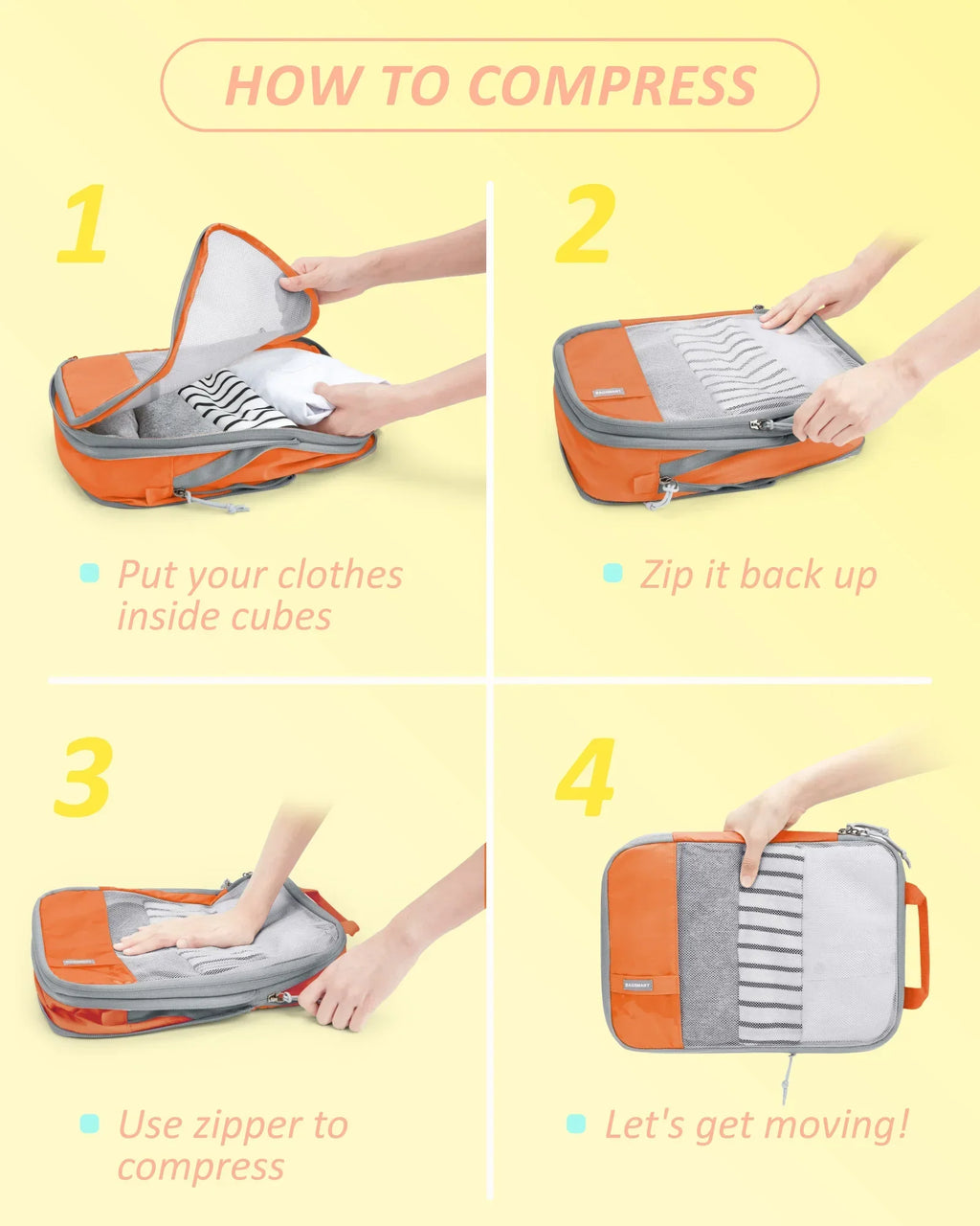 - Use: Travel packing, organization, luggage space-saving
