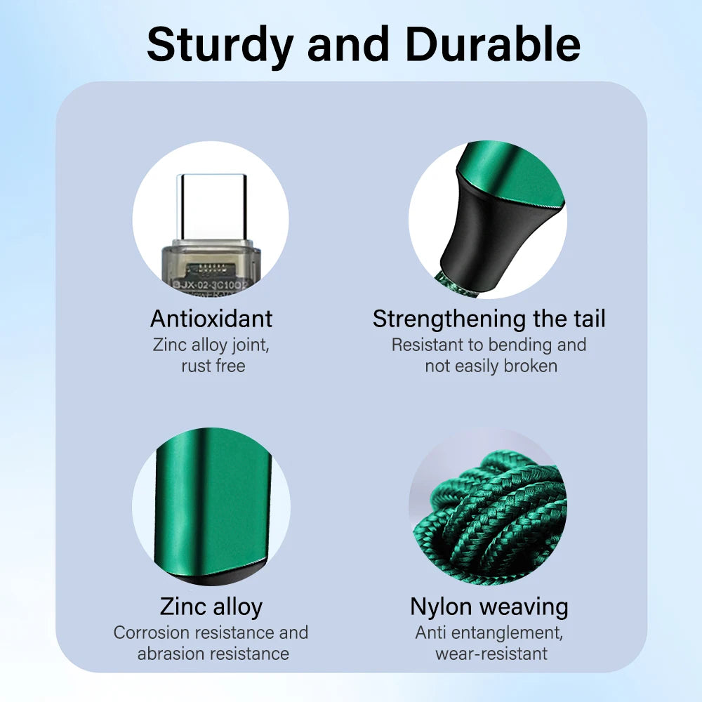 Durable & Long-Lasting Build: Designed with reinforced nylon braiding and high-quality connectors, this cable is resistant to tangling, bending, and wear. It ensures long-term durability, even with daily heavy use.