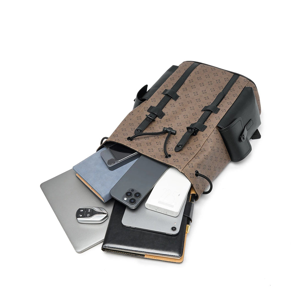 Premium Printed Leather Craftsmanship: This stylish men’s backpack is made from high-quality PU leather featuring a bold monogram print that exudes modern sophistication. The premium material provides a smooth texture, excellent durability, and resistance to daily wear and tear, making it perfect for business or casual use.
