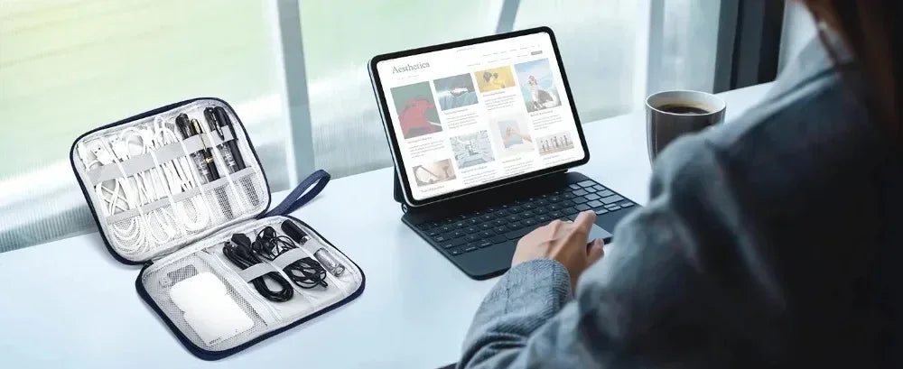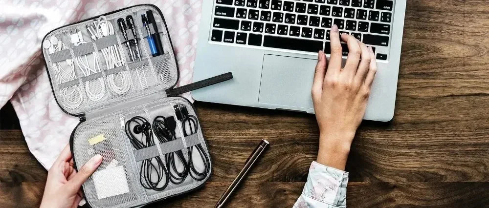 With multiple compartments and elastic loops, this bag prevents cables from tangling and keeps everything accessible. Ideal for tech-savvy travelers and professionals, it’s a must-have accessory for hassle-free digital organization on the go.